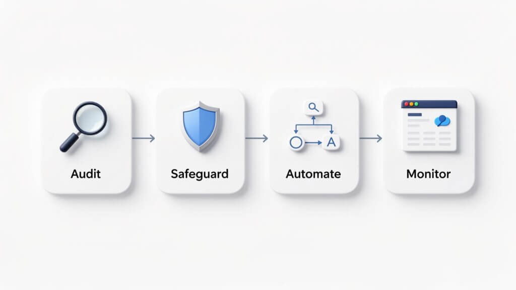 Audit → Safeguard → Automate → Monitor. A simple process that gets you automated without the headaches.